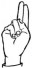 На ћирилици написано МИЛЕНА ЛУДОШКИ састоји се из 13 слова [?]. Исписано ћириличном једноручном азбуком за глувонеме: